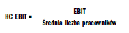 Czwarty wskaźnik określa, jaka część EBIT została wypracowana przez jeden etat. Współczynnik ten nosi nazwę HC EBIT: