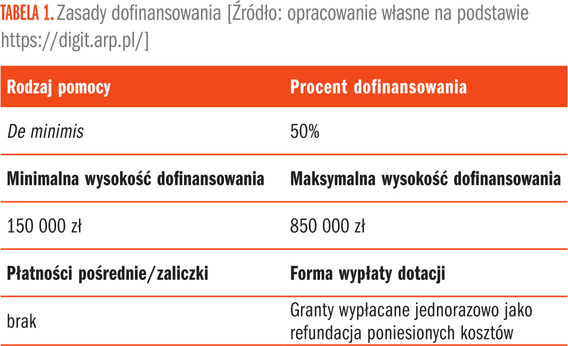 Beneficjent może otrzymać 50-proc. dofinansowanie jako pomoc de minimis w wysokości minimum 150 000 zł, maksymalnie 850 000 zł. Zasady wsparcia przedstawia Tabela 1.