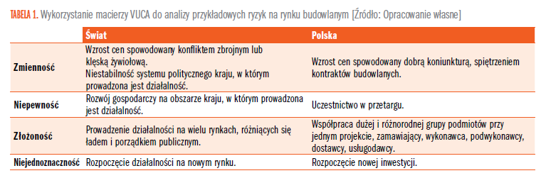 Świat VUCA jest rzeczywistością, w której zarządzający przedsiębiorstwami budowlanymi muszą się odnaleźć, mogą jednak przeanalizować otoczenie swojej firmy używając do tego tradycyjnych narzędzi zarządzania ryzykiem i tym sposobem zidentyfikować czynniki ryzyka, z którymi muszą się zmierzyć.
