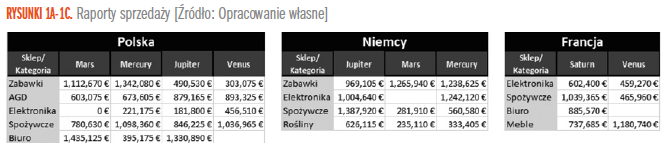 W naszym przykładzie chcemy połączyć przychody z 3 krajów – Polski, Niemiec i Francji (rysunki 1a-1c).
