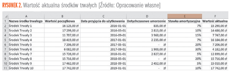 Po jej skopiowaniu dla wszystkich środków trwałych nasze zestawienie będzie wyglądać tak, jak pokazuje Rysunek 2.