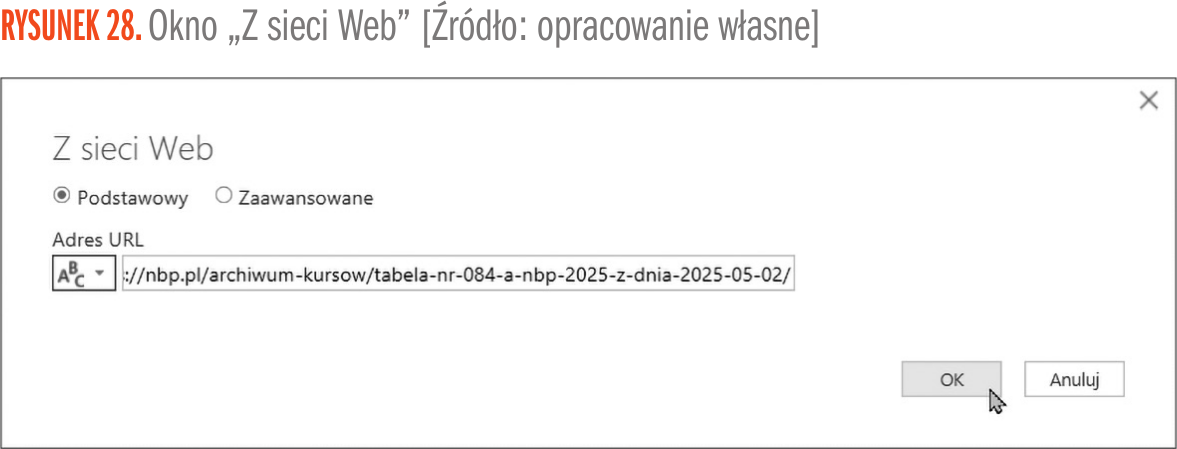 Kliknięcie w to polecenie otworzy to okno „Z sieci Web”, gdzie musimy w pole „URL” wkleić podany przez nas wcześniej adres strony www, jak pokazuje to Rysunek 28.