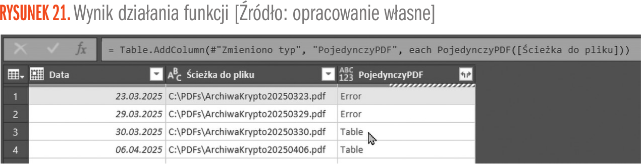 - Rozwijamy kolumnę z wynikami funkcji (Rysunek 23).