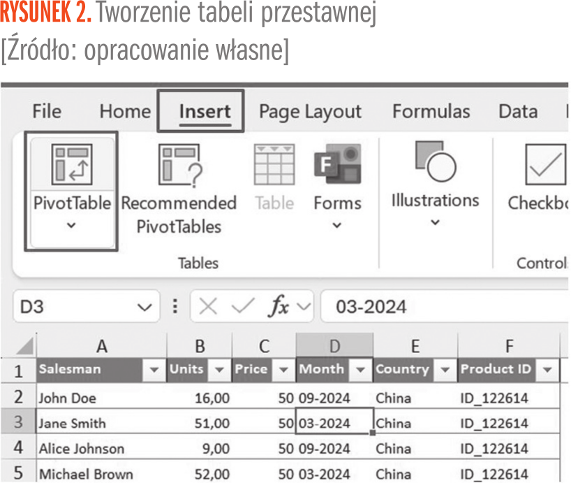 Jak w kilku krokach stworzyć tabelę przestawną ze wskazanego zestawu danych?
