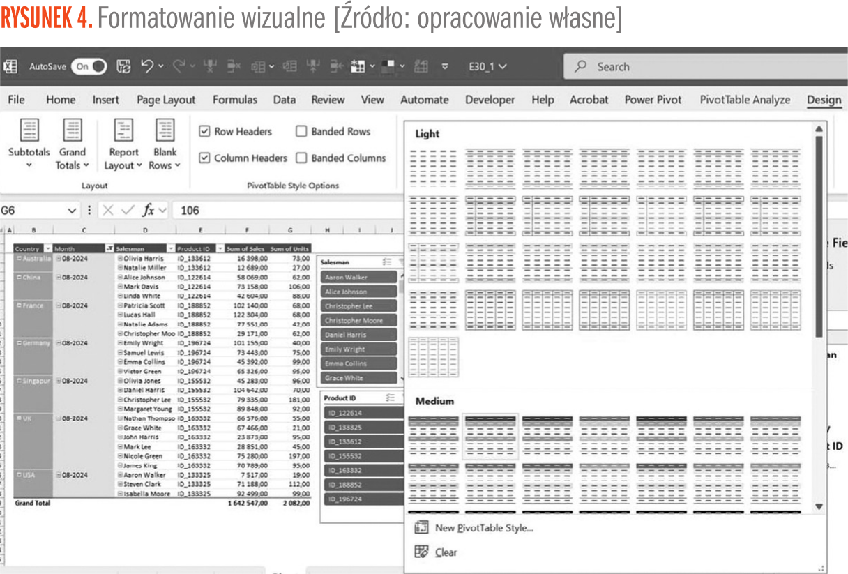 Formatowanie wizualne oraz wybór układu raportu (tabeli)