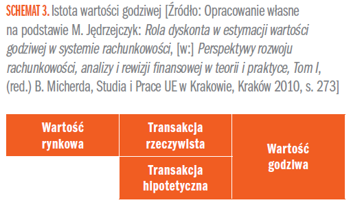 Wartości rynkowe i ustalane na ich podstawie ceny nie muszą być równe, ponieważ z zasady cena powstaje w wyniku negocjacji pomiędzy stronami transakcji, a wynik negocjacji nie jest uwzględniany w wycenie wartości, będącej podstawą ustalenia ceny. Istotne jest, by przeciętne wartości rynkowe odpowiadały przeciętnym cenom rynkowym na danym rynku. W znaczeniu schematu 3 wartość godziwa może być ustalona na podstawie rzeczywistej transakcji rynkowej lub transakcji hipotetycznej. W praktyce częściej będzie to transakcja hipotetyczna jako baza dla ustalenia wartości godziwej. Stąd będzie obowiązywać zależność: