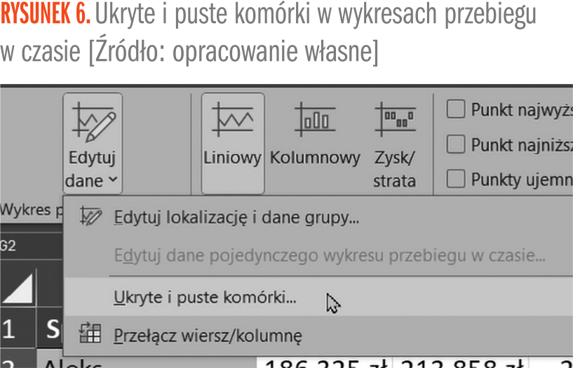 Gdy rozwiniemy to polecenie, mamy jeszcze opcję pokazania, jak traktowane są ukryte i puste komórki (Rysunek 6).