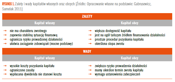 Poniżej zaprezentowano główne wady i zalety finansowania działalności poprzez kapitały własne i obce. Jedna z naczelnych zalet kapitałów obcych to ich niższy koszt, w porównaniu do kapitałów własnych, dzięki tzw. tarczy podatkowej (z ang. tax shield).
